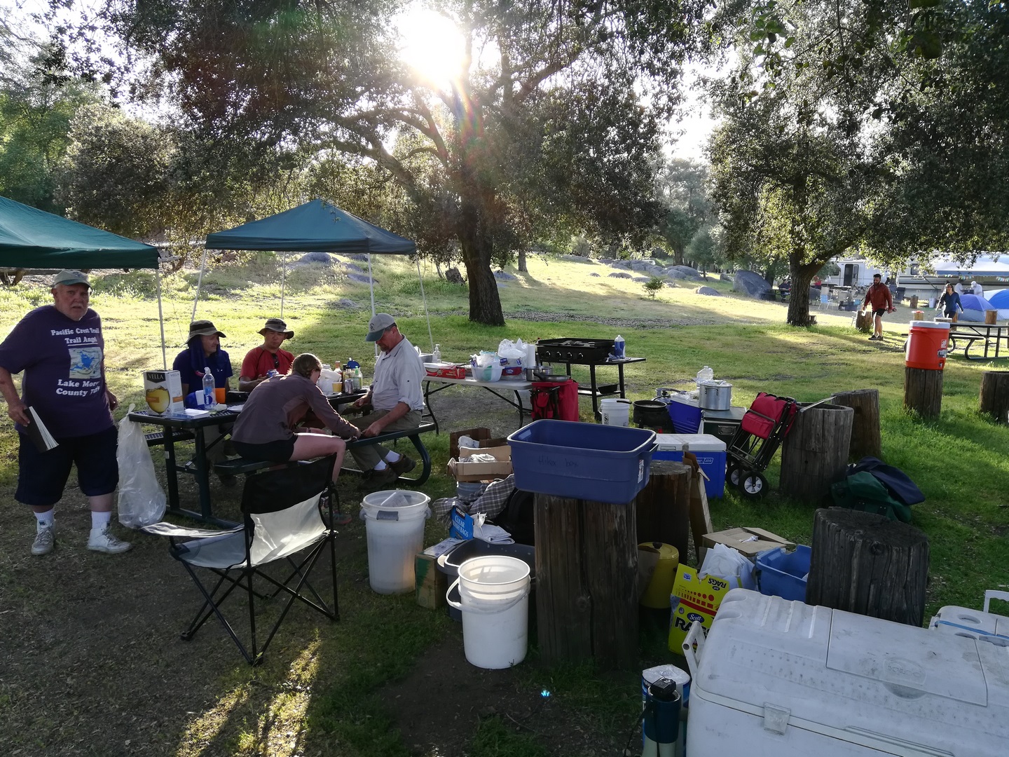 Arrivée au lac Morena vers 16h30 avec une excellente surprise : ici nous attendent nos premiers trail Angels il s’agit de personnes qui viennent bénévolement sur le chemin en aide aux randonneurs, leur apporter un peu de réconfort. Dans leur cas ils ont installé un énorme grill et nous confectionnent de magnifiques hamburgers. Il y a aussi de la soupe, des oranges et des fraises. J’en profite pour prendre aussi un énorme Coca-Cola bien frais.