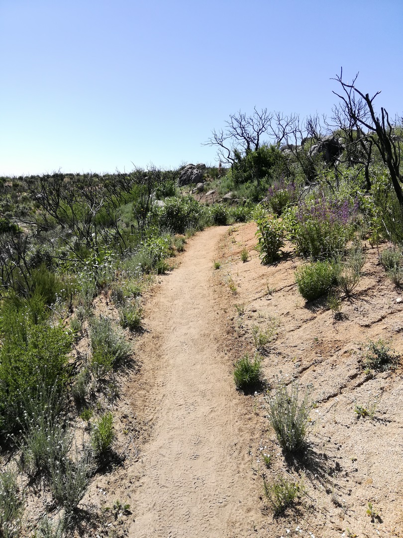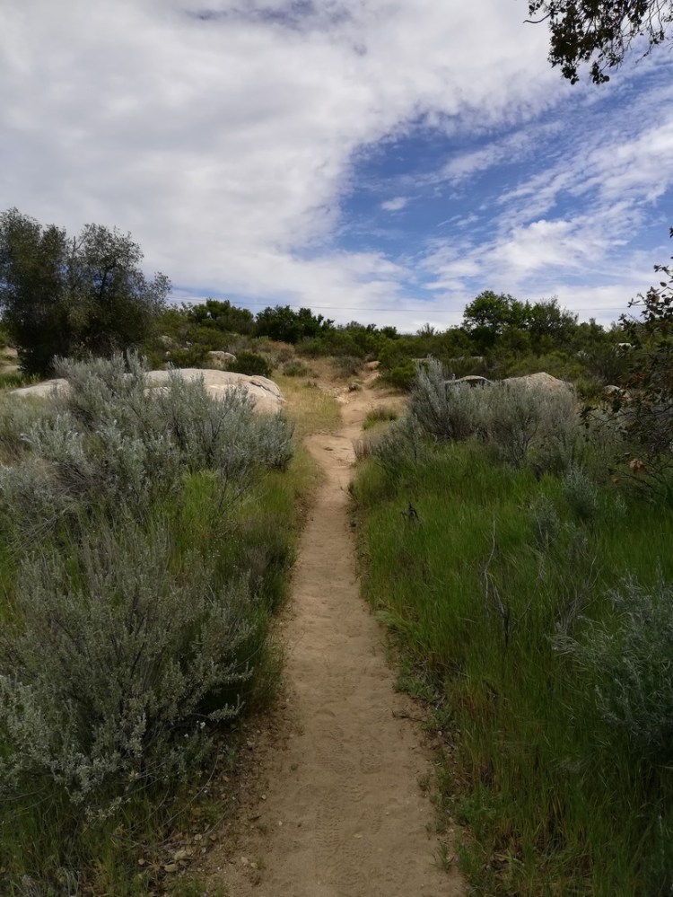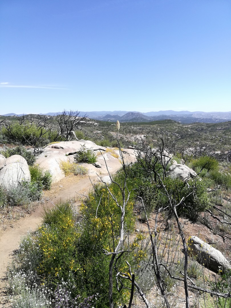 Le début d’après-midi on redescend tout ce qui a été monté le matin pour se retrouver au fond d’un Canyon avec un petit ruisseau. Nous sommes au mile 15. J’en profite pour me reposer un petit peu à l’ombre avant d’attaquer la dernière montée de la journée qui s’étire sur 5 miles encore. Cette montée est sinueuse et très pentue en pleine chaleur. C’est difficile mais arrivé au sommet je vois le lac Morena en contrebas et il ne me reste plus qu’à descendre. Près du sommet je double un randonneur israélien qui souffre de crampes musculaires et de fatigue. Il me dit que son sac est trop lourd. Je croise aussi Laura une anglaise qui peine beaucoup à la montée. Elle est à son deuxième jour de marche. Moi aussi mes épaules commencent à me faire drôlement souffrir ainsi que tout le haut de mon dos.