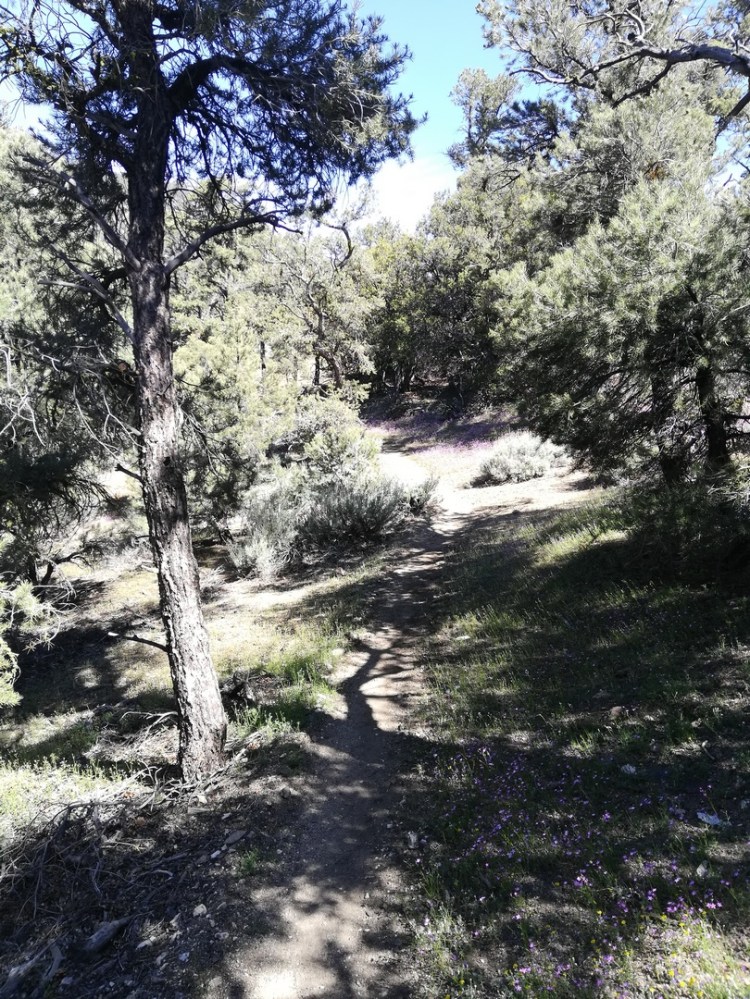 La première montée est assez raide mais heureusement à l’ombre car nous attaquons tôt. Le sommet se franchit en passant 3 petits cols qui sont très beaux et fleuris. On redescend ensuite pour retrouver une source d’eau et vient ensuite la deuxième montagne que j’attaque vers 11h30. Il se met à faire très chaud et je me démène pendant une heure en transpirant comme rarement. J’arrive finalement à un spot sympa pour le repas de midi à l’ombre où je rejoins Rémi et Joris, avec une petite sieste d’une demi heure.