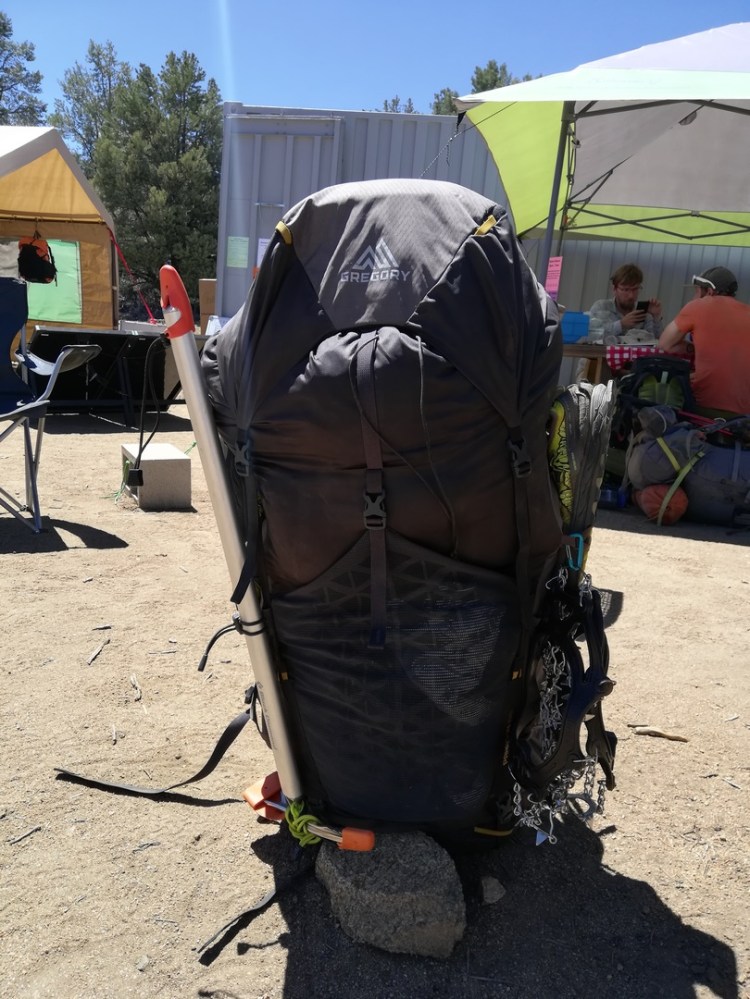 Avec la boîte à ours (boîte en plastique obligatoire pour protéger la nourriture des ours dans la Sierra), la nourriture pour 7 jours, le piolet, les crampons, le pantalon de ski, les guêtres et quelques vêtements qui ont changés (gants de montagne, haut technique) j’arrive à 19,9kg. Il faudra rajouter l’eau mais dans la montagne il y en aura partout. Les autres sont à peu près pareils.
