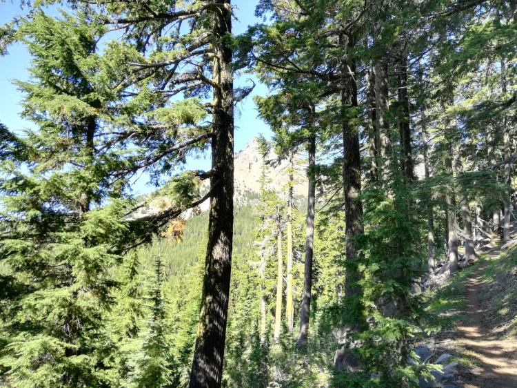 Le chemin monte pendant 3 miles puis reste à peu près plat toute la matinée dans la forêt. On se fait agresser par des hordes de moustiques jusqu’à midi malgré les sprays répulsifs qui n’ont pas l’air de leur faire grand-chose. Je vois tous les randonneurs se donner des claques pour les tuer comme moi.