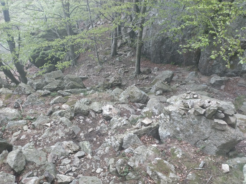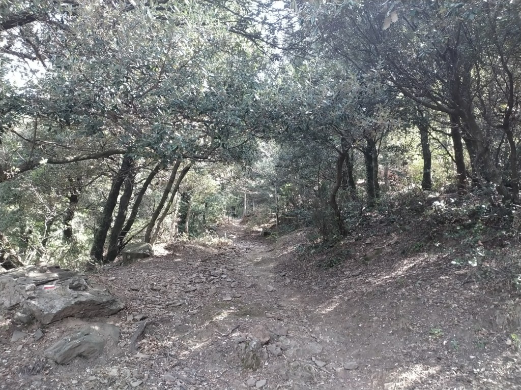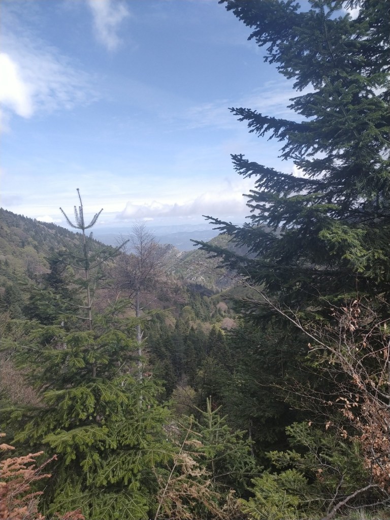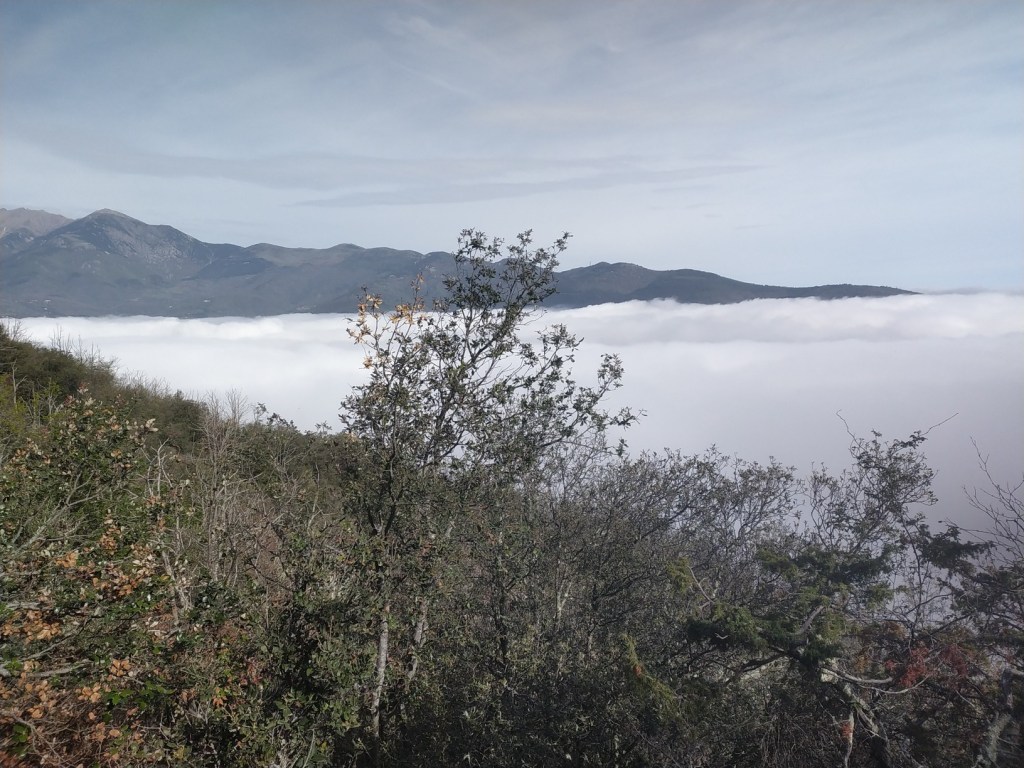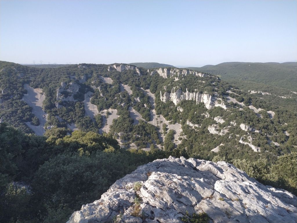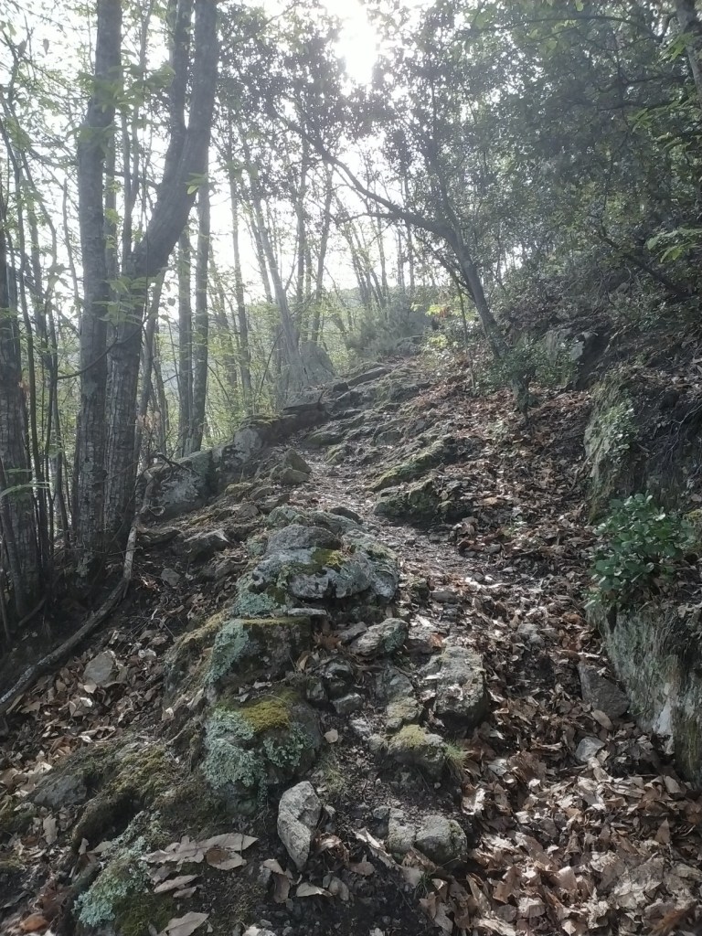 J’ai juste 11 km à faire pour rejoindre le village de Le Rozier où Sophie va me rejoindre. Lever tardif, réveillé par une nouvelle pérégrination bovine tintinabulante. Je poursuis la descente des gorges du Tarn par un joli sentier alternant les hauts et les bas, en passant par un hameau néobab où dorment de jeunes gens dans des grottes ouvertes aménagées ou dans des anciennes maisons en pierre qu’ils retapent.