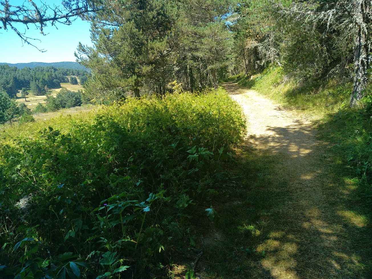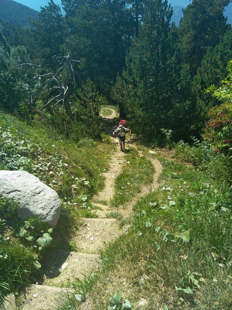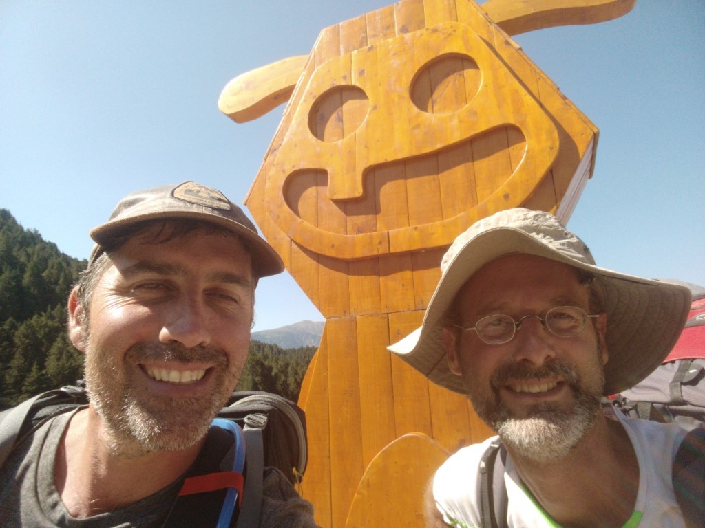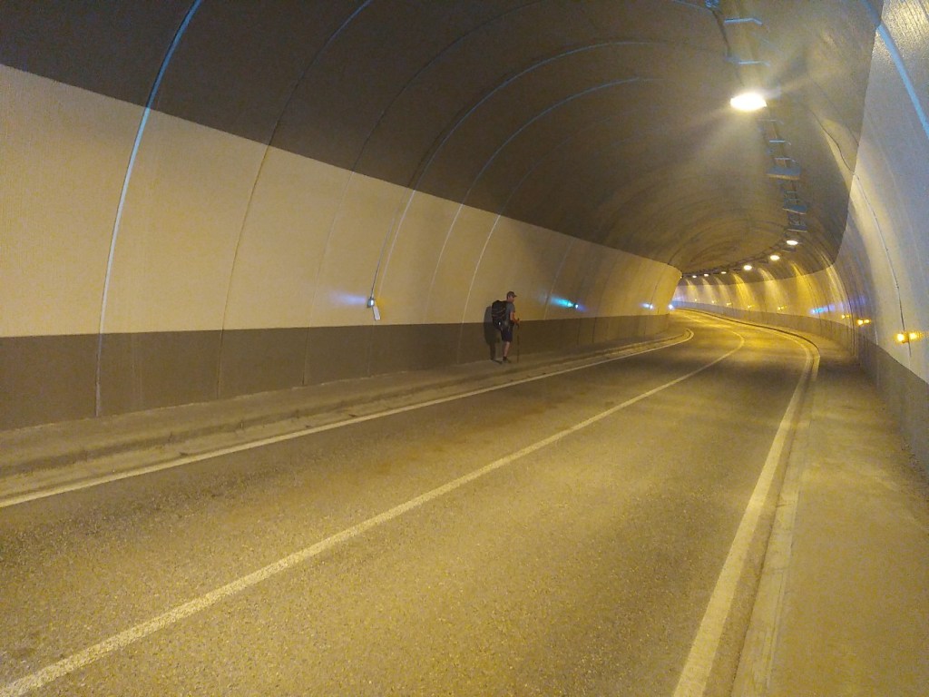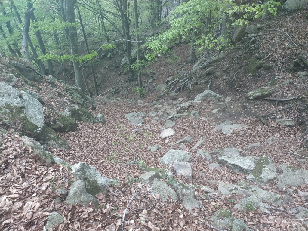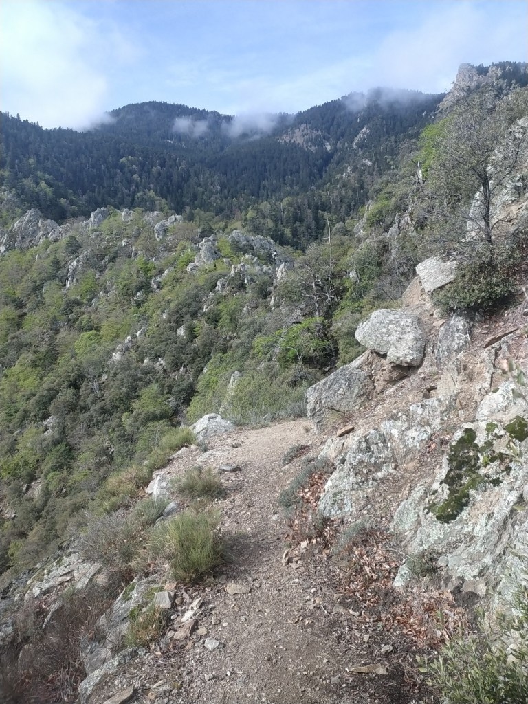 J’ai juste 11 km à faire pour rejoindre le village de Le Rozier où Sophie va me rejoindre. Lever tardif, réveillé par une nouvelle pérégrination bovine tintinabulante. Je poursuis la descente des gorges du Tarn par un joli sentier alternant les hauts et les bas, en passant par un hameau néobab où dorment de jeunes gens dans des grottes ouvertes aménagées ou dans des anciennes maisons en pierre qu’ils retapent.