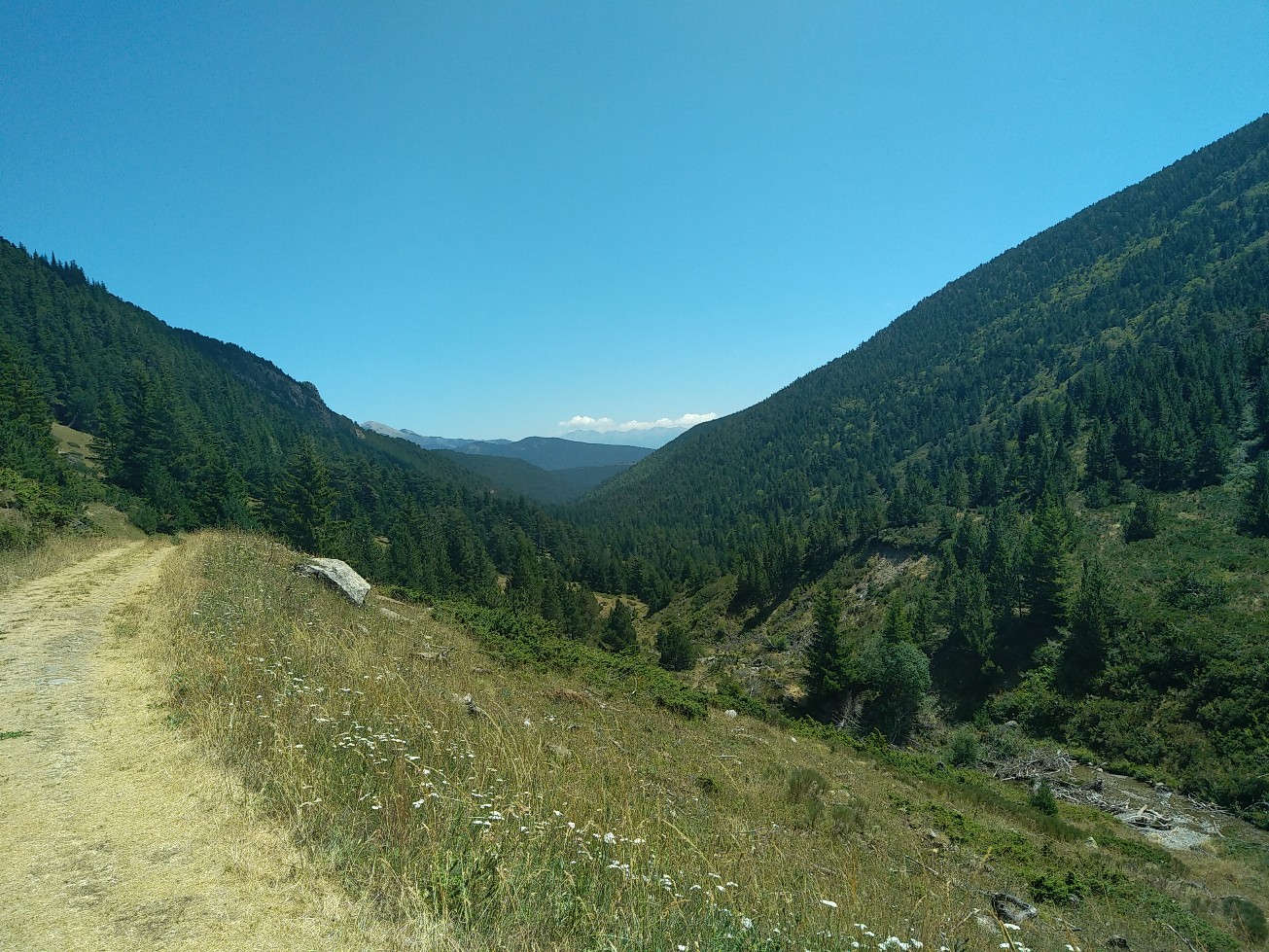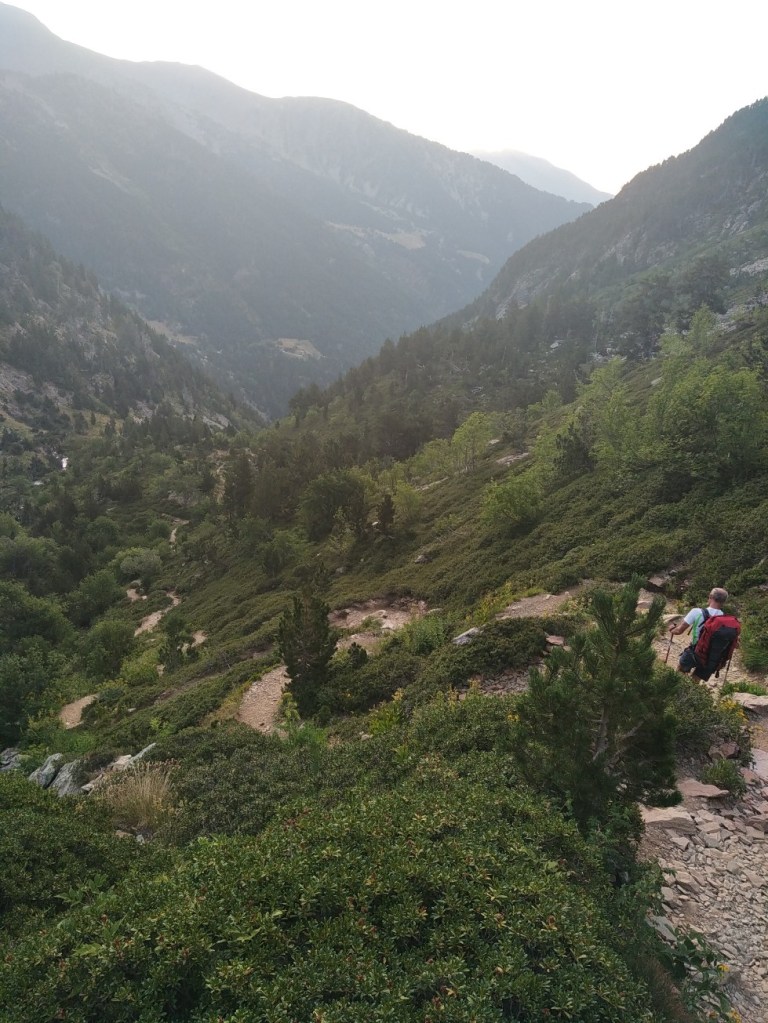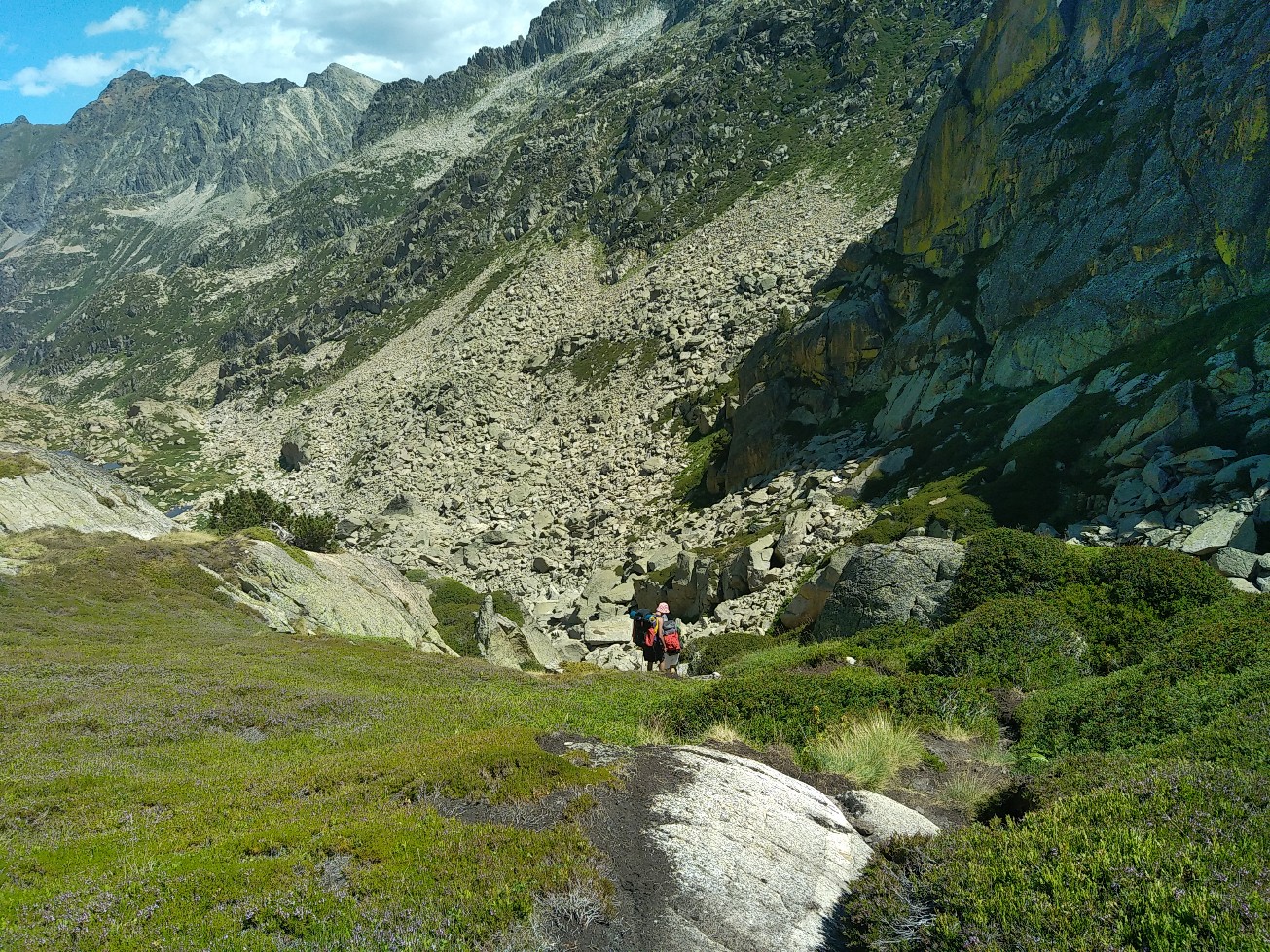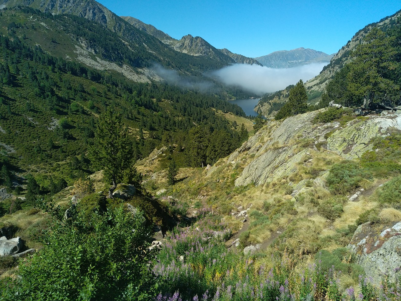J’ai juste 11 km à faire pour rejoindre le village de Le Rozier où Sophie va me rejoindre. Lever tardif, réveillé par une nouvelle pérégrination bovine tintinabulante. Je poursuis la descente des gorges du Tarn par un joli sentier alternant les hauts et les bas, en passant par un hameau néobab où dorment de jeunes gens dans des grottes ouvertes aménagées ou dans des anciennes maisons en pierre qu’ils retapent.