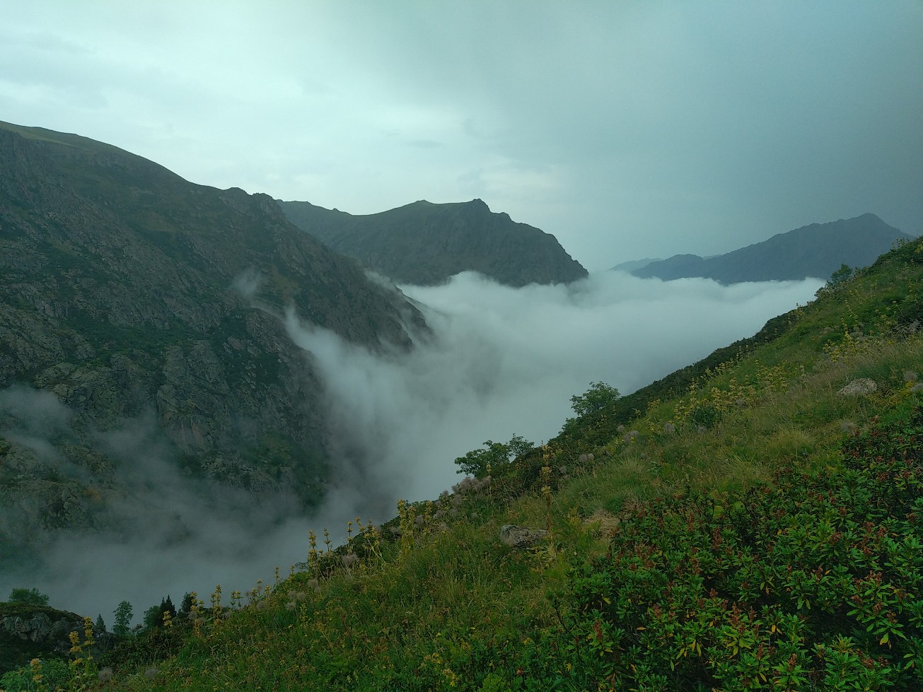 J’ai juste 11 km à faire pour rejoindre le village de Le Rozier où Sophie va me rejoindre. Lever tardif, réveillé par une nouvelle pérégrination bovine tintinabulante. Je poursuis la descente des gorges du Tarn par un joli sentier alternant les hauts et les bas, en passant par un hameau néobab où dorment de jeunes gens dans des grottes ouvertes aménagées ou dans des anciennes maisons en pierre qu’ils retapent.